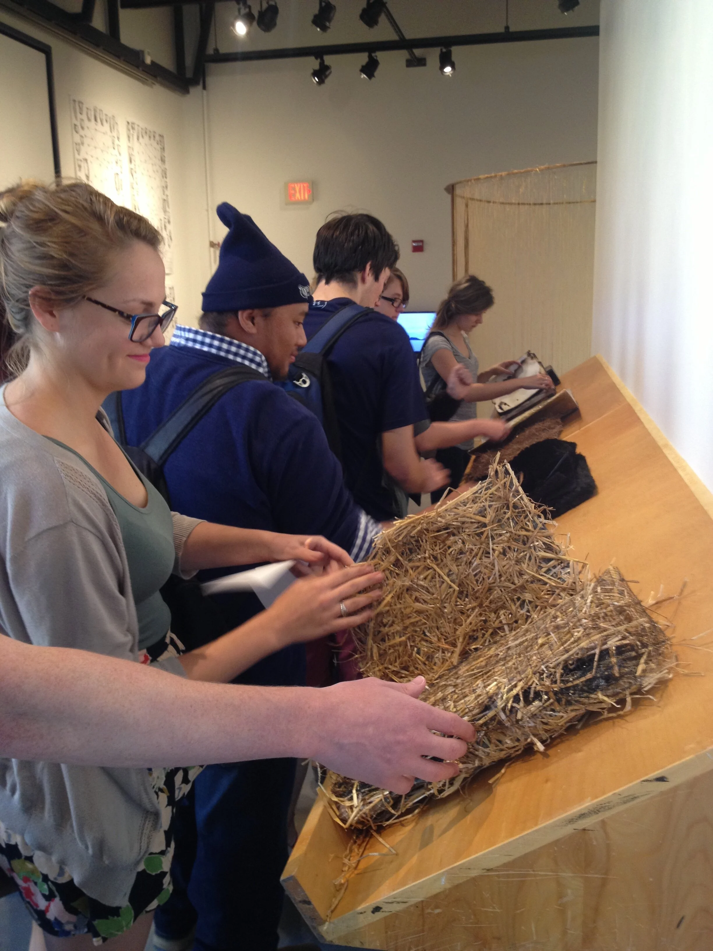 Fodder, straw, canvas, mixed media, 16 x 11 x 6”