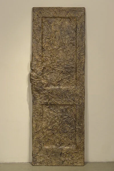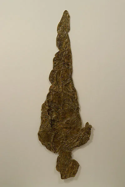Materials: wire mesh, plaster, mixed media. Dimensions: 71” x 17” x 1.5”.